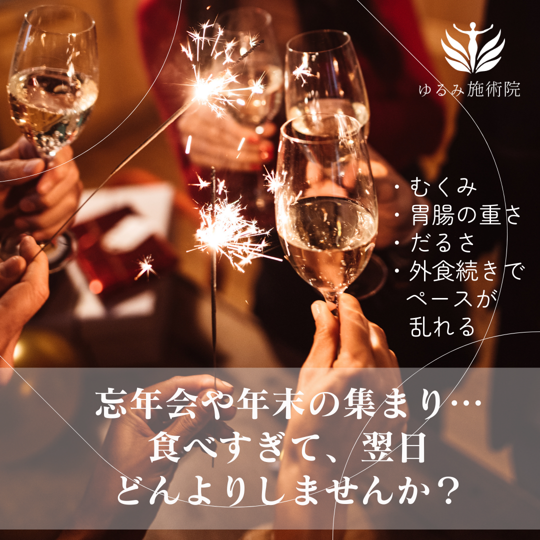 つい食べすぎてしまって「翌日どんより…」ってこと、ありませんか?愛媛松山にある美容整体ゆるみ施術院 こんにちは♪松山市にある《頭蓋骨小顔&全身バランス reset-yurumi-sejutu 2025年12月22日