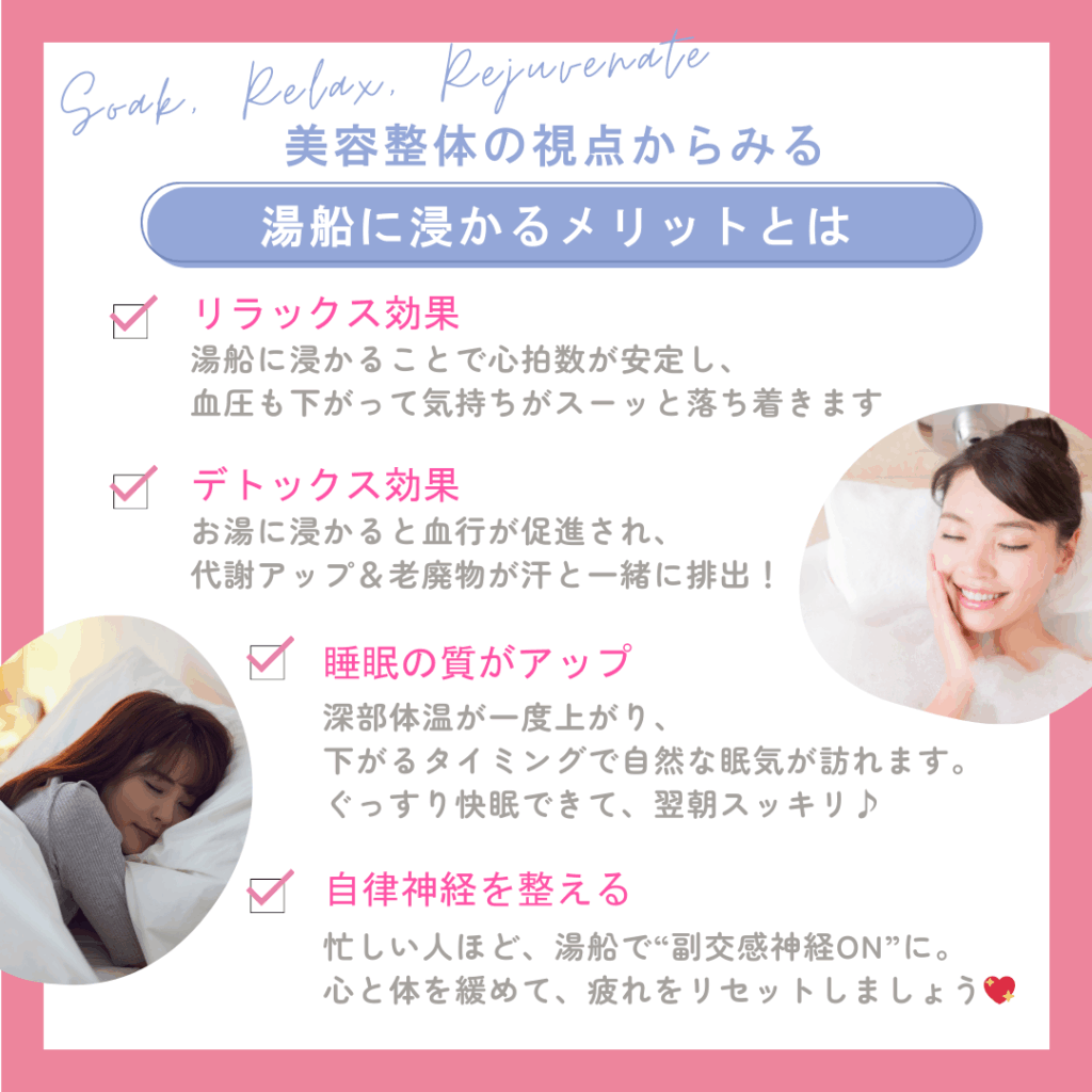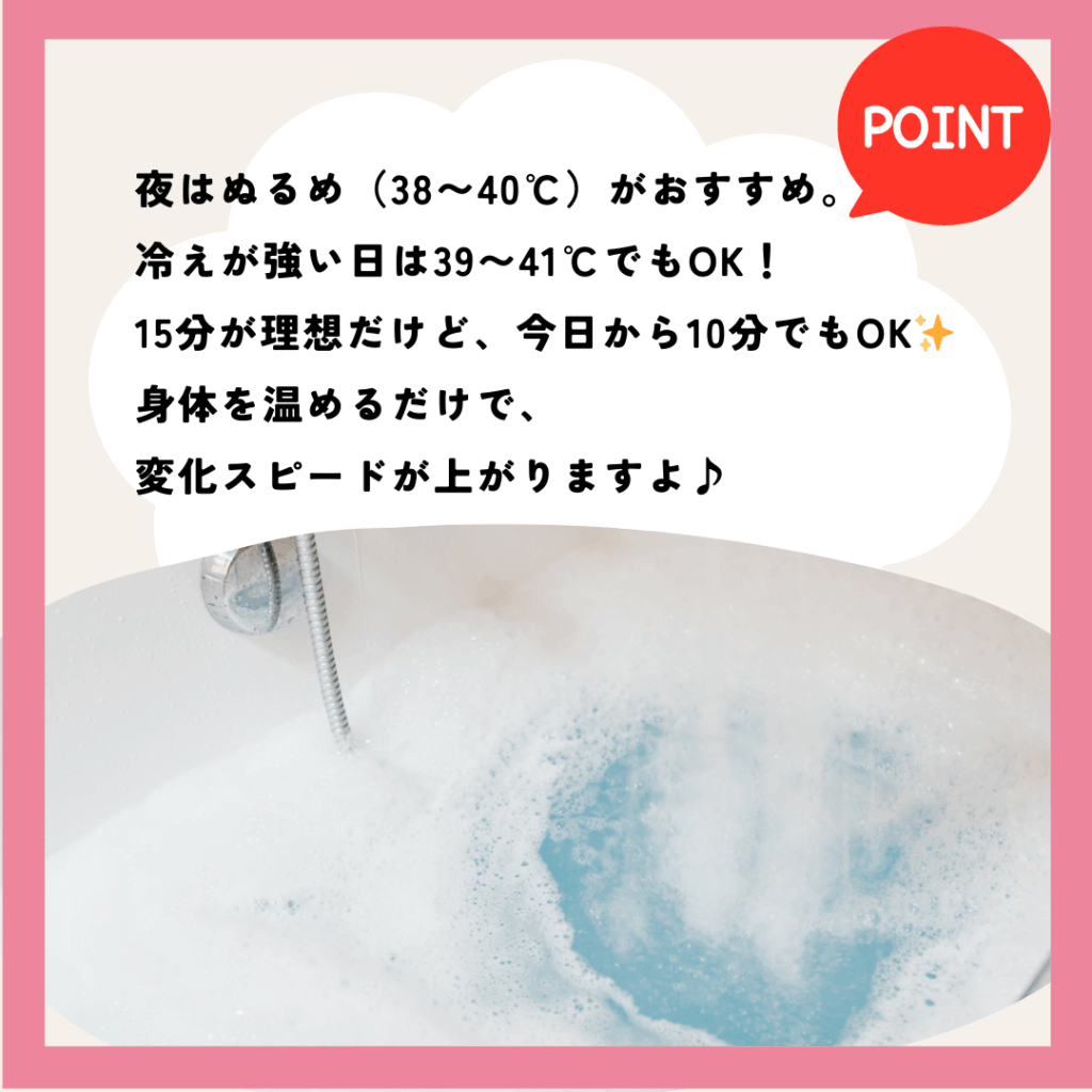 🫧夜はぬるめ(38〜40℃)がおすすめ。