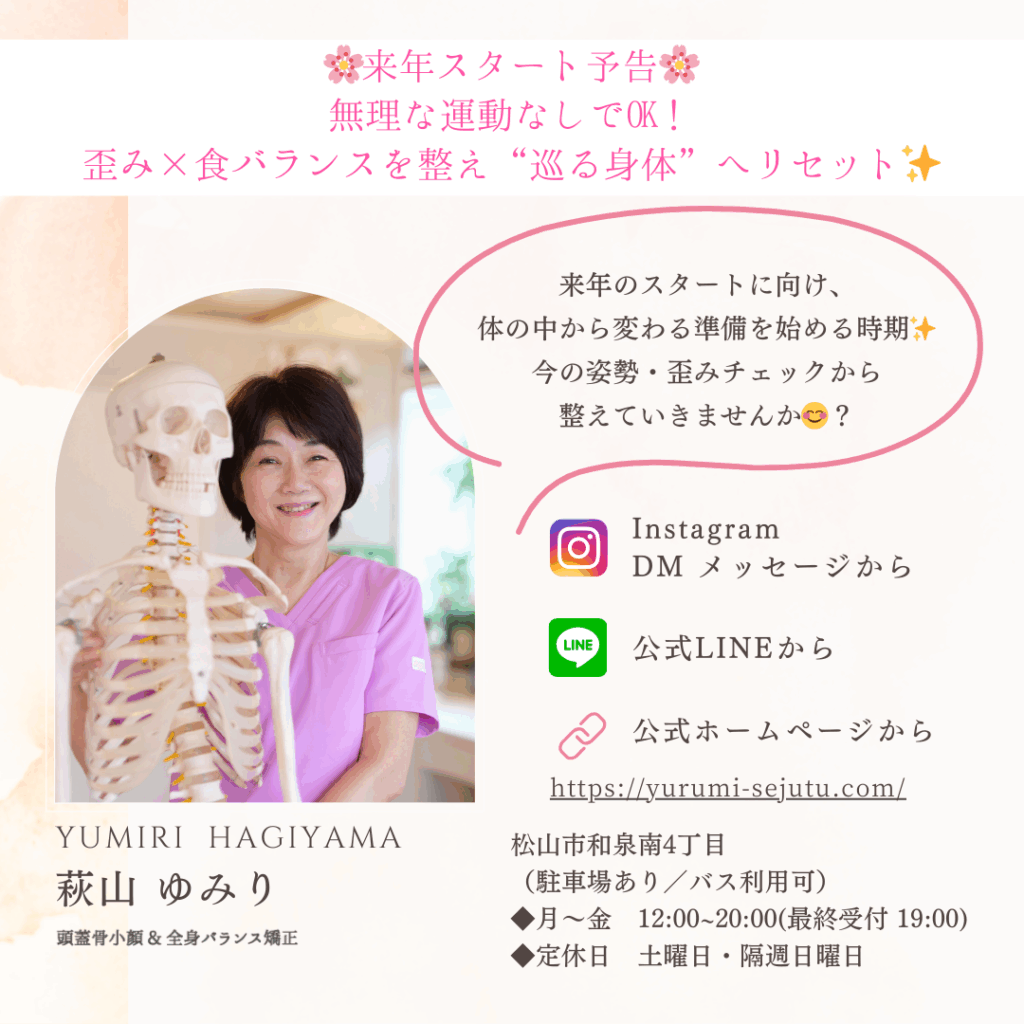 松山市にある《頭蓋骨小顔&全身バランス矯正サロン ゆるみ施術院》です。